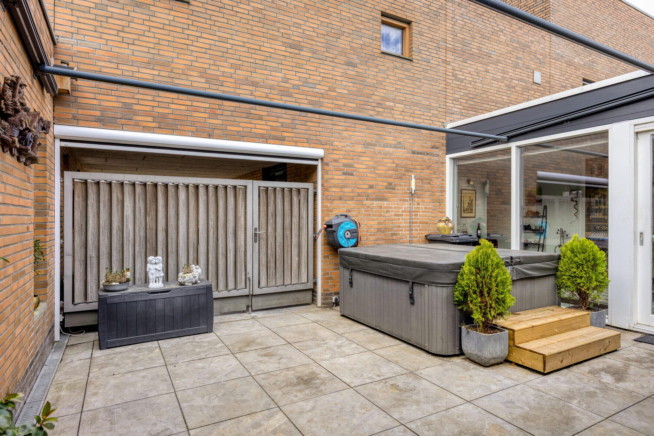 Daarnaast is er een rustige achtertuin, netjes aangelegd met bestrating en borders. Tussen de binnentuin en achtertuin ligt de praktische berging, ideaal voor het opbergen van gereedschap en andere spullen.