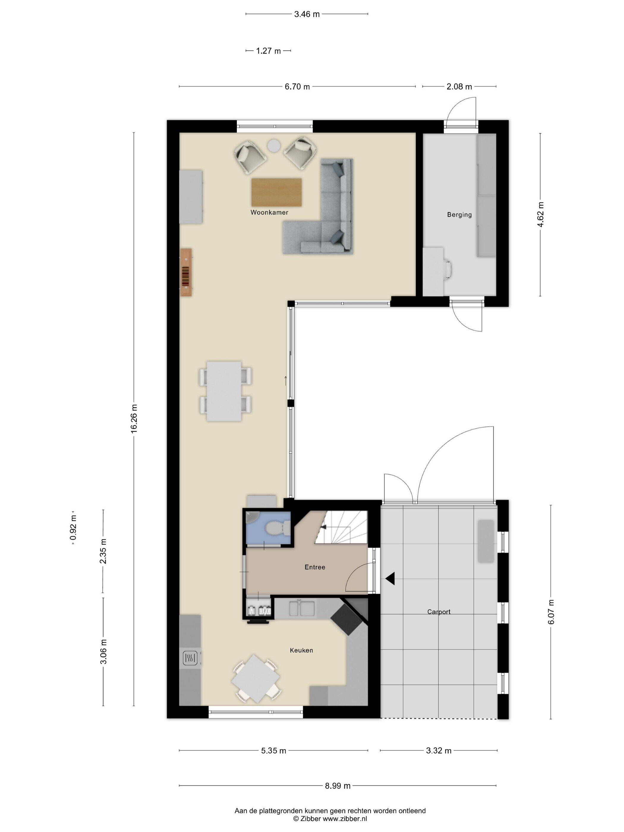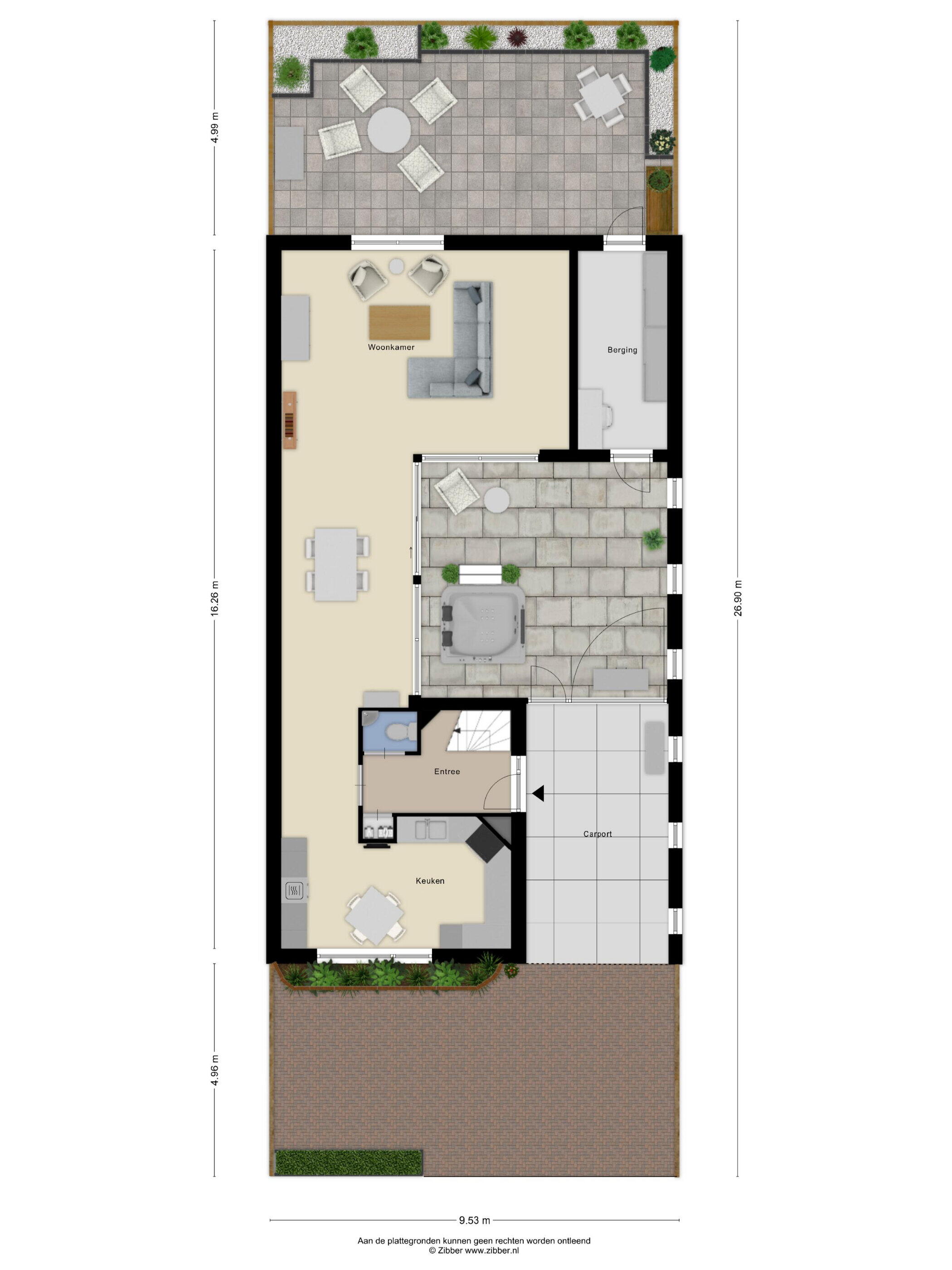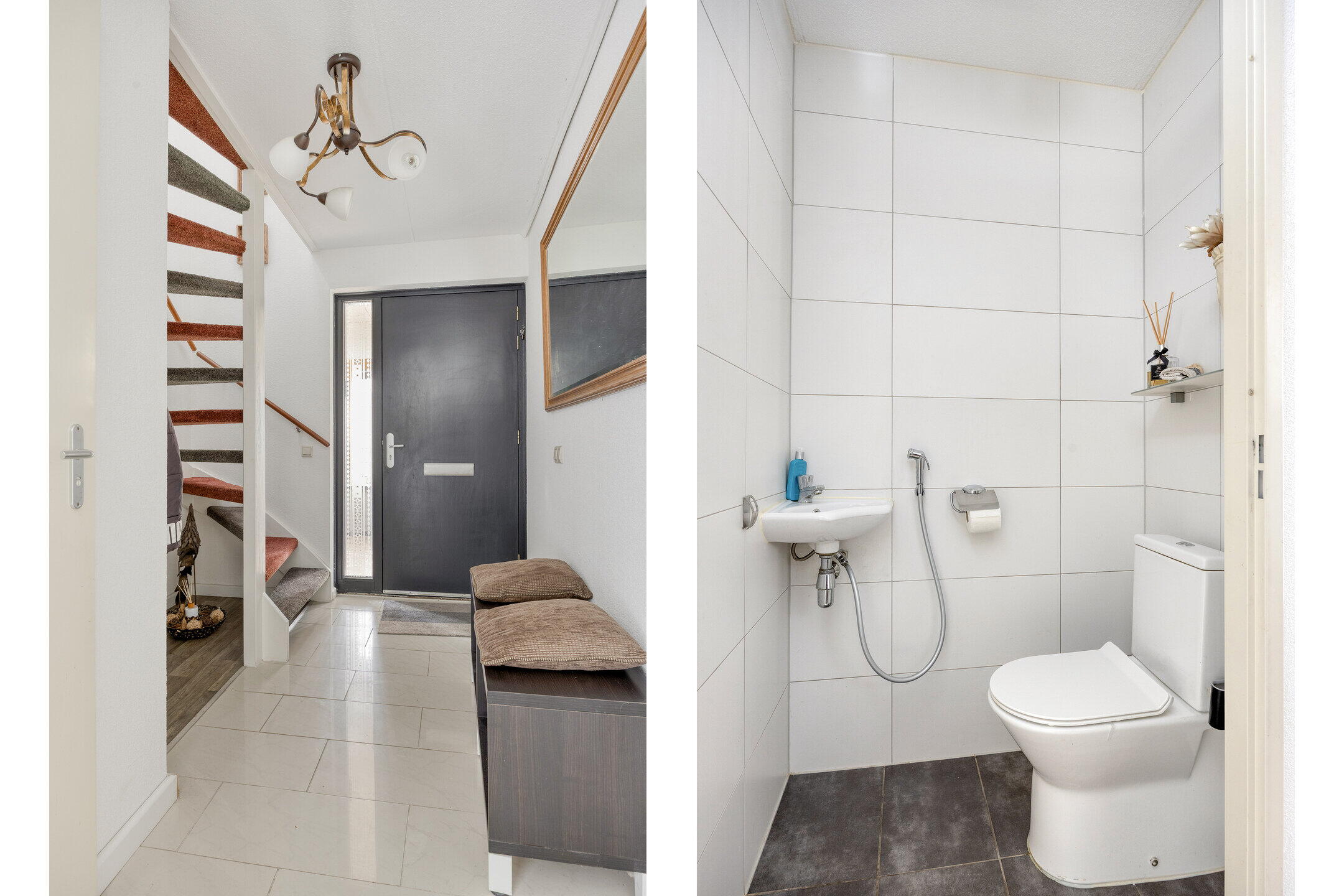 Je arriveert hier heerlijk ontspannen: parkeren doe je gewoon op je eigen oprit of onder de carport. Via de voordeur onder de carport stap je de woning binnen. In de entree vind je direct de trapopgang naar de eerste verdieping en een net toilet. Vanuit de hal loop je rechtdoor de woonkamer in, waar je meteen wordt verrast door de bijzondere indeling.