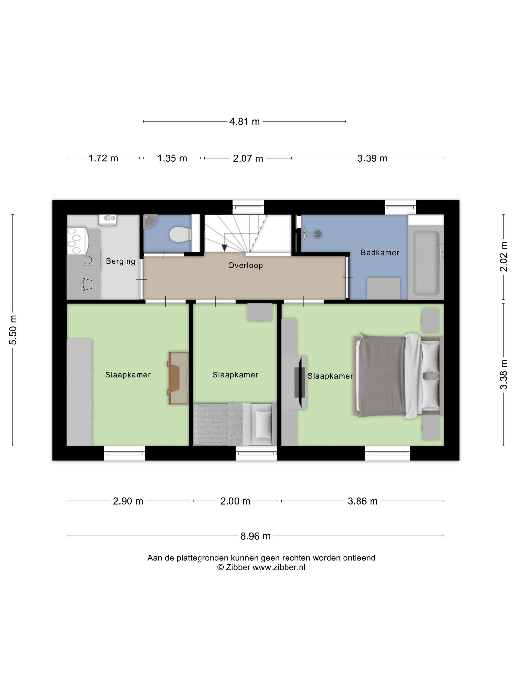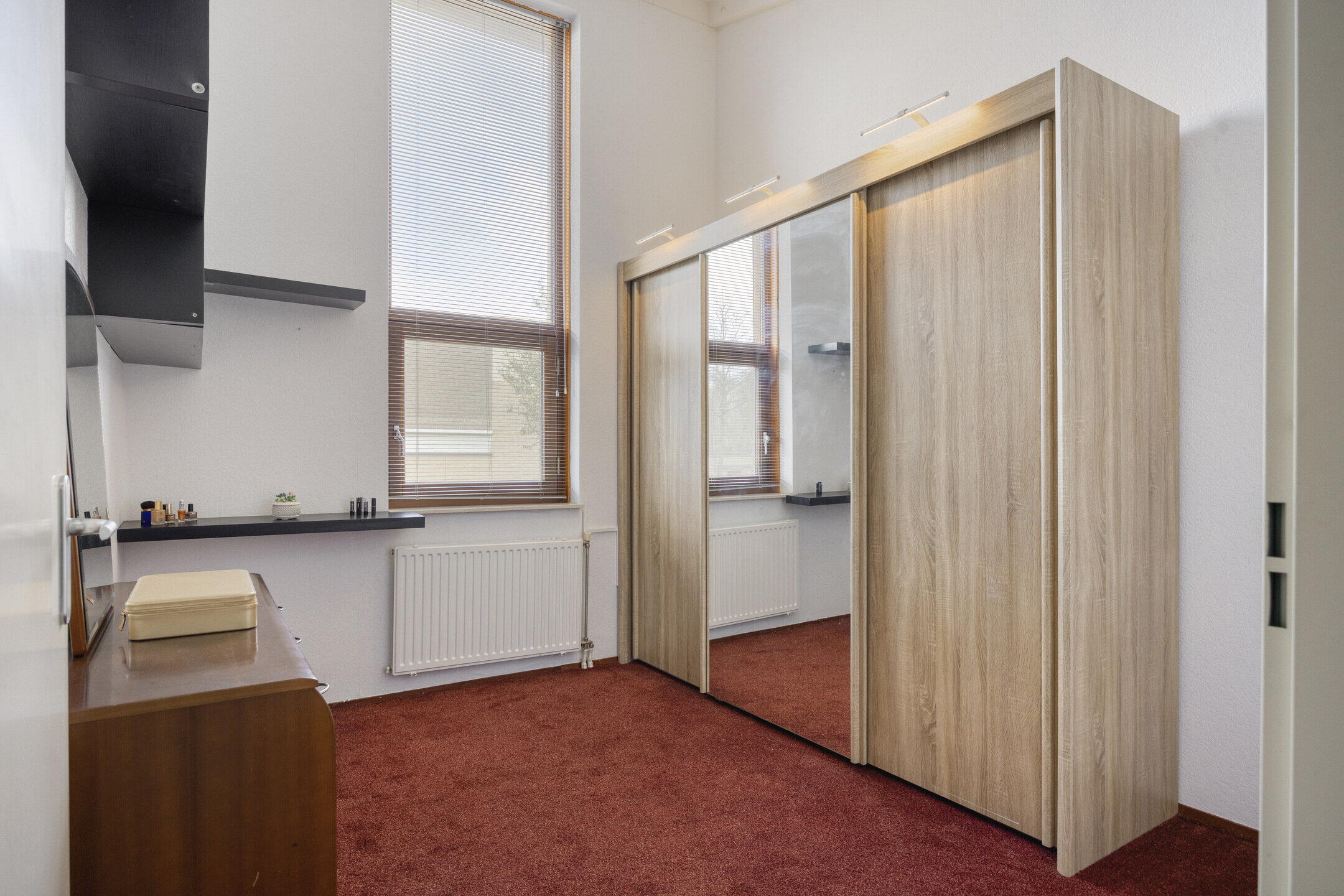 Op de eerste verdieping vind je drie slaapkamers, netjes naast elkaar gelegen. Wat direct opvalt zijn de hoge plafonds, die elke kamer een extra ruimtelijk en luxe gevoel geven. Alle slaapkamers zijn afgewerkt met dezelfde vloerbedekking, wat zorgt voor rust en eenheid.